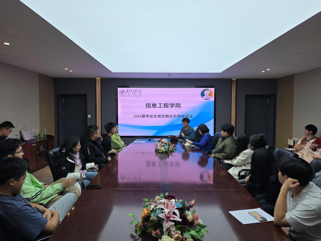 为深入贯彻党的教育方针,充分发挥学生党员的先锋模范作用,助力毕业生党员顺利开启人生职业新征程。10月24日,信息工程学院召开“党旗领航促就业,凝心聚力助启航”毕业生党员就业座谈会,学生党支部书记、辅导员、全体毕业生党员参会。