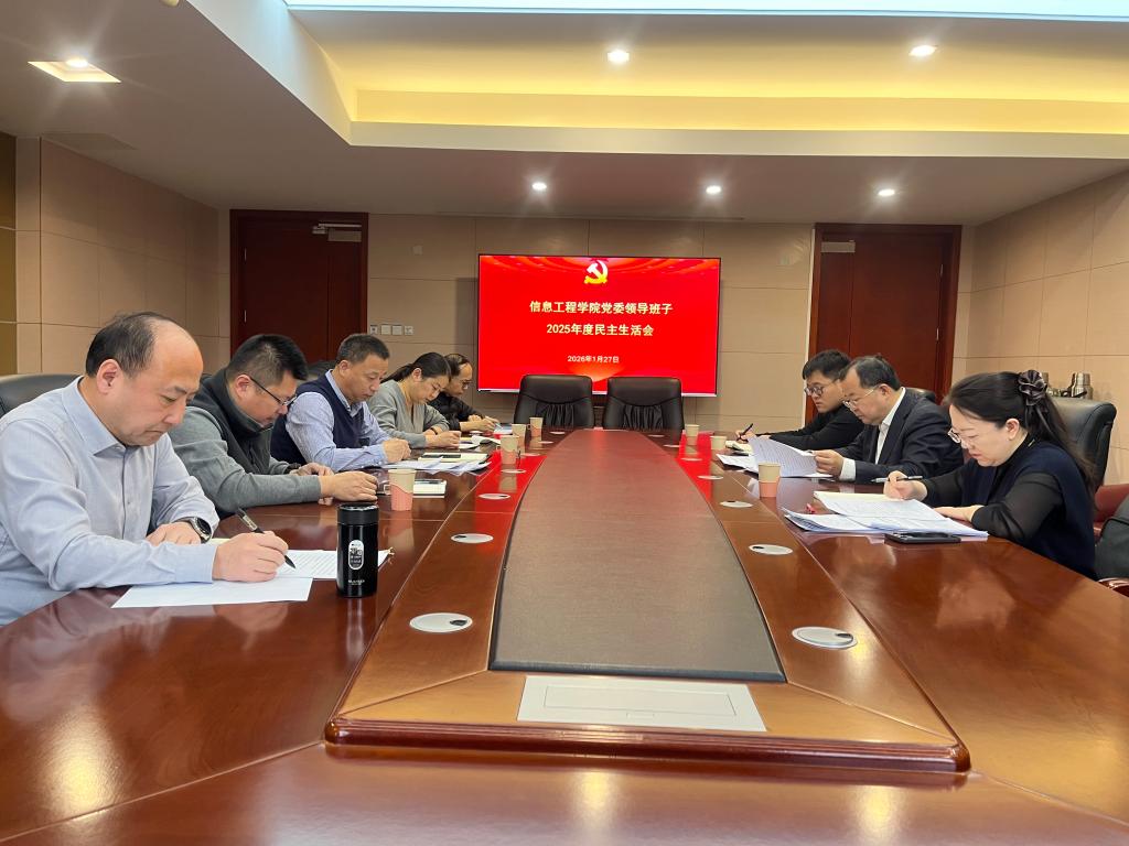 2026年1月27日下午,信息工程学院在新城校区明德楼203会议室召开党委领导班子2025年度民主生活会,副校长张杰、督导组杨斐、温柯到会指导。学院党委书记刘建国主持会议,全体学院领导班子成员参加。